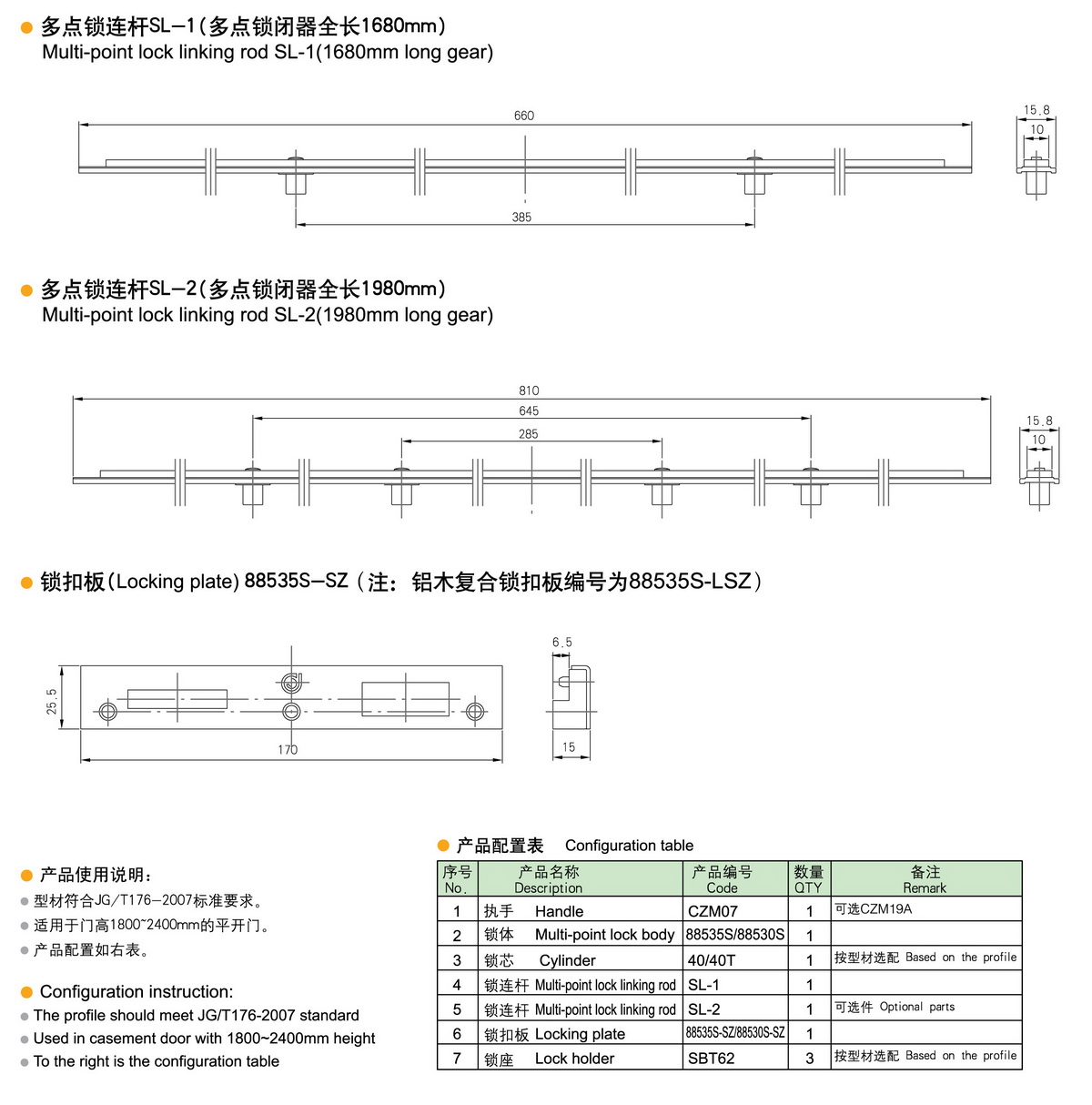 傳動桿、鎖點、鎖塊
